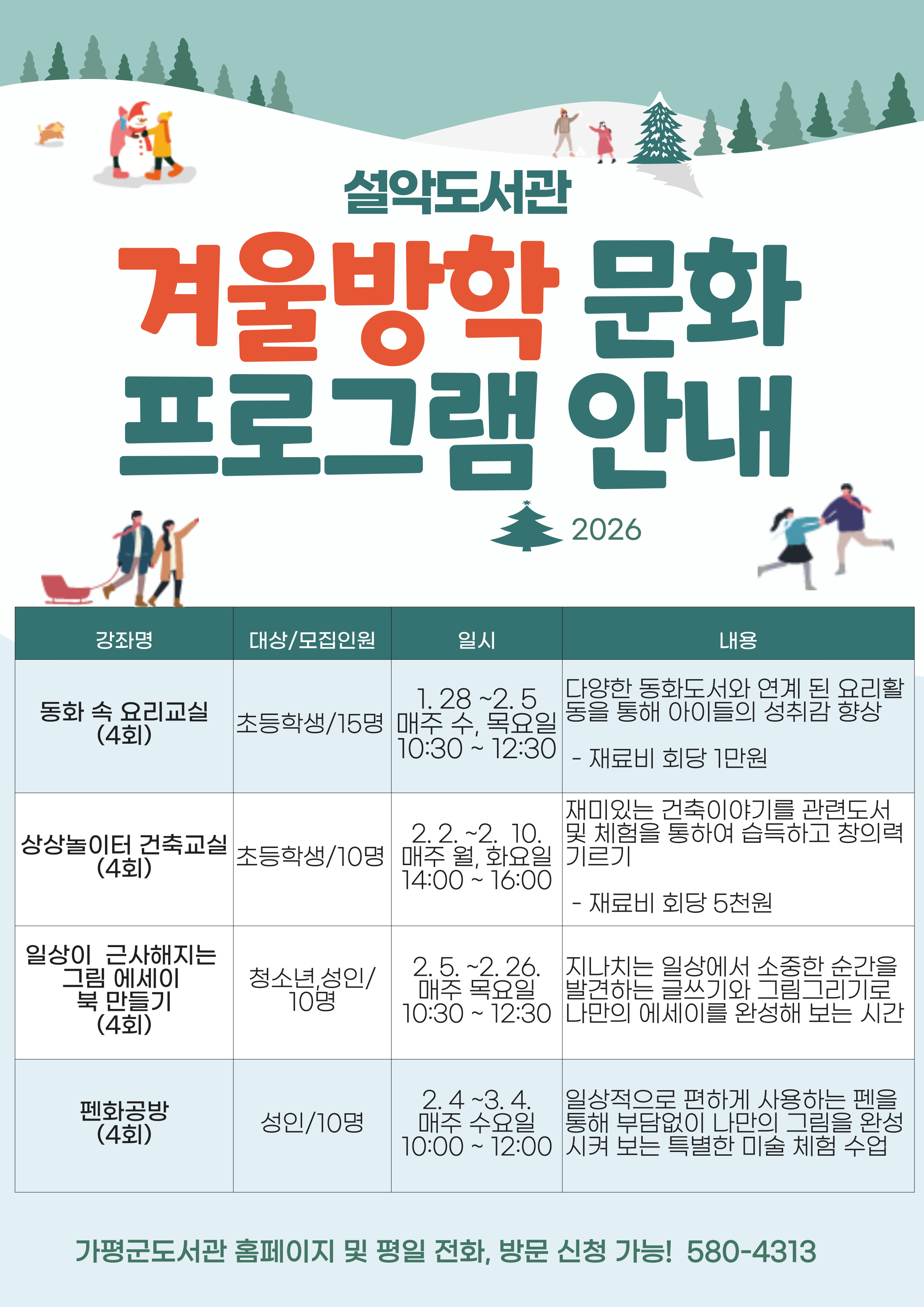 2026년 설악도서관 겨울방학 문화프로그램 안내