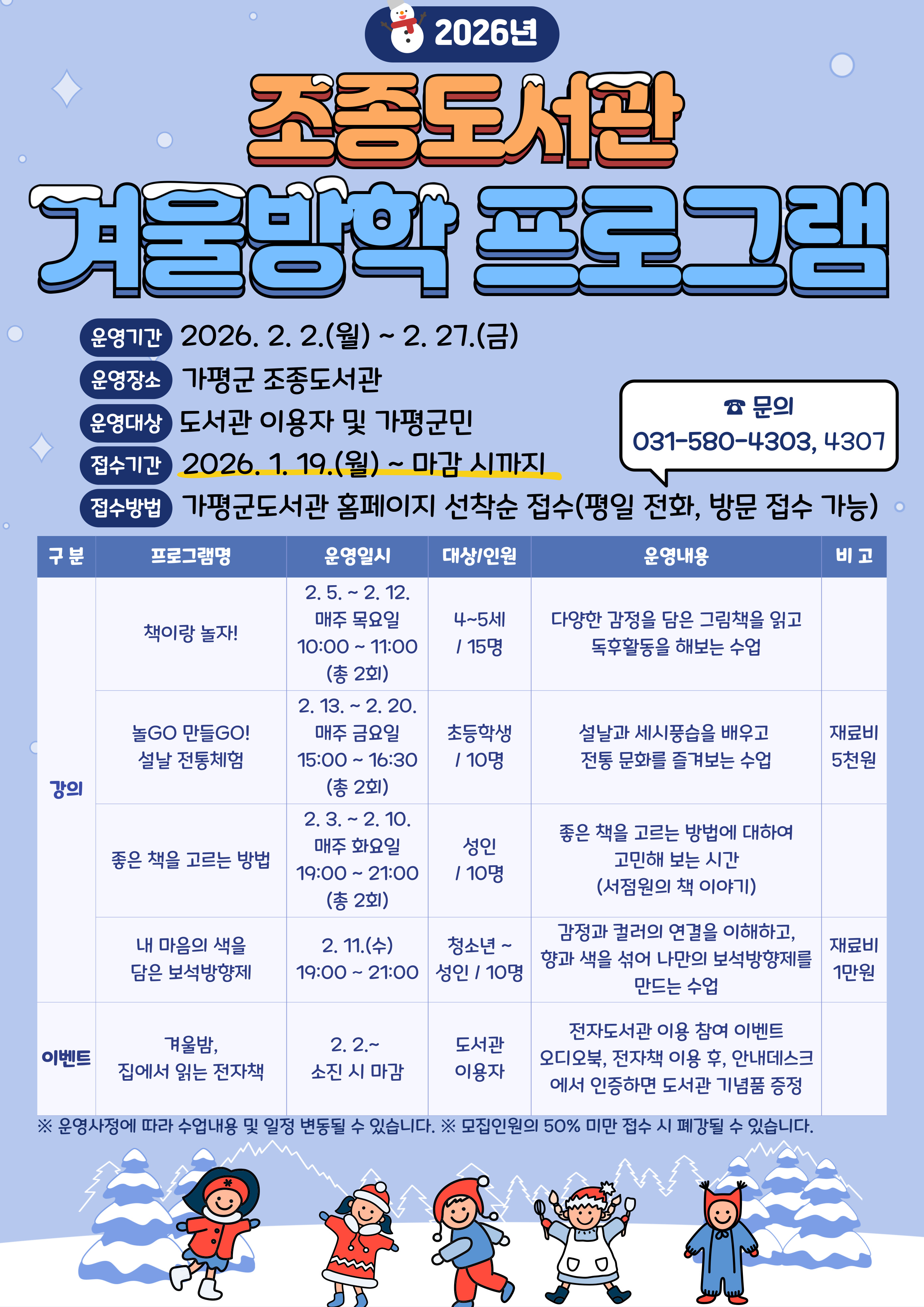 2026년 조종도서관 겨울방학 문화프로그램 안내