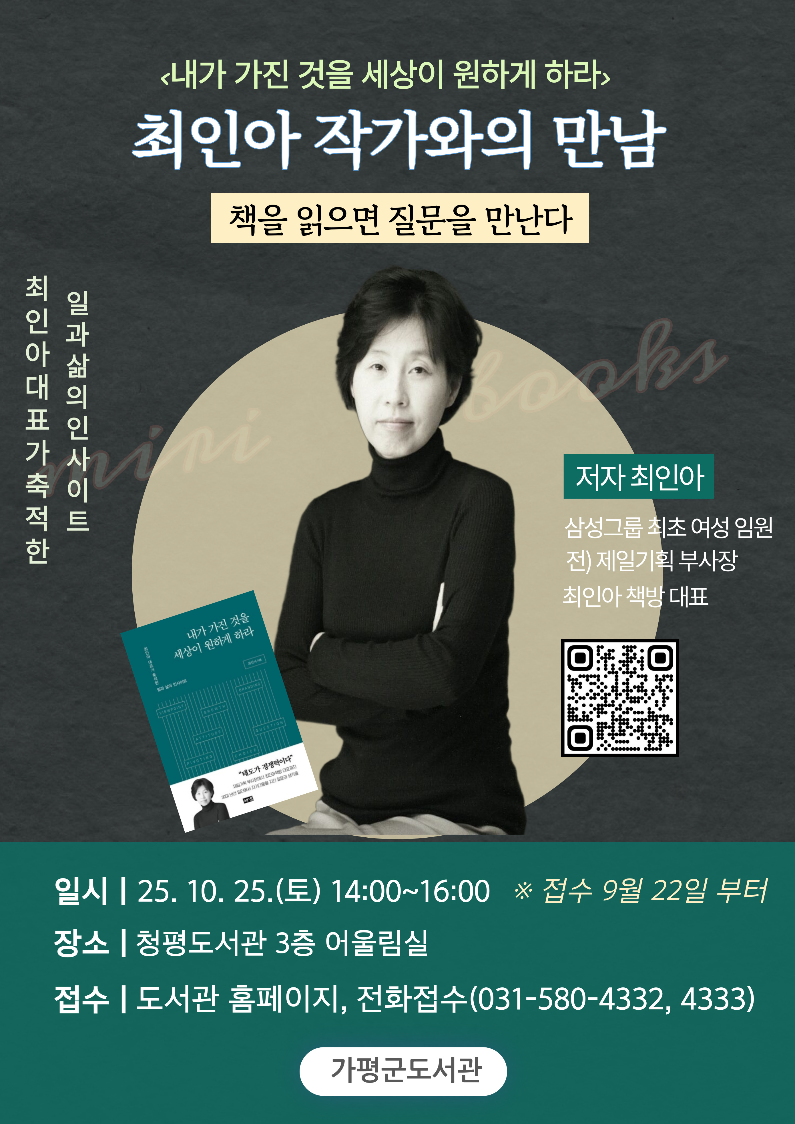 | 프로그램명 | 행사종료 2025. 정기작가와의 만남 【최인아 작가 초청강연】 |